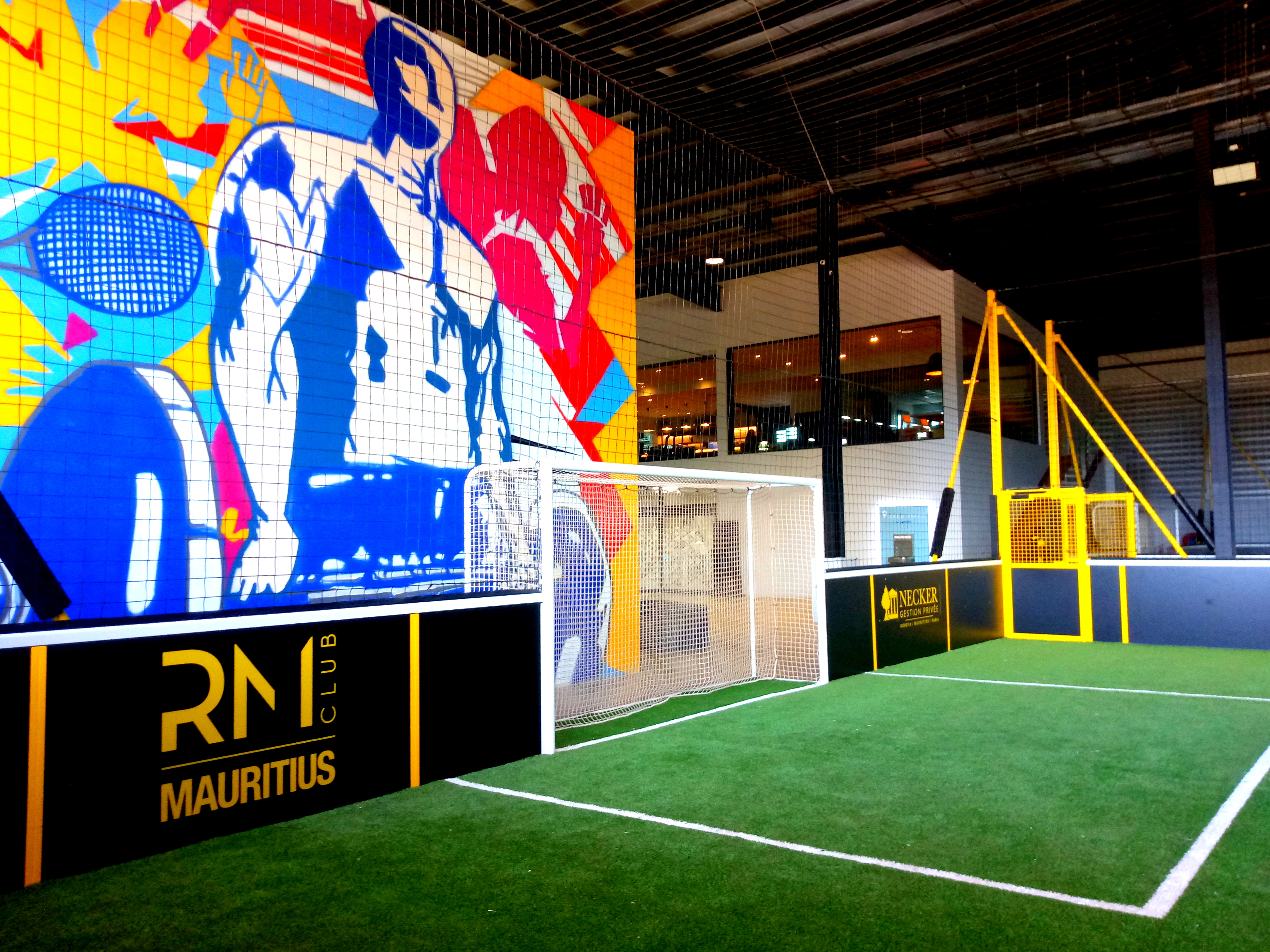 A stone’s throw from the Grand Baye, easy to reach and surrounded by nature, the centre has been equipped by WSBSPORT with 2 indoor football fields with latest generation no-infill synthetic grass, 2 padel courts with 12 mm safety glass, and a multisport pitch.