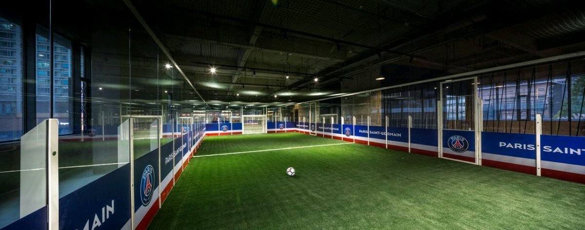 maller pitches entirely sorrounded by tempered glass walls. A larger field is in the terrace adiacent to the indoor sport zone. The fields have been personalized at the image of PSG football club.