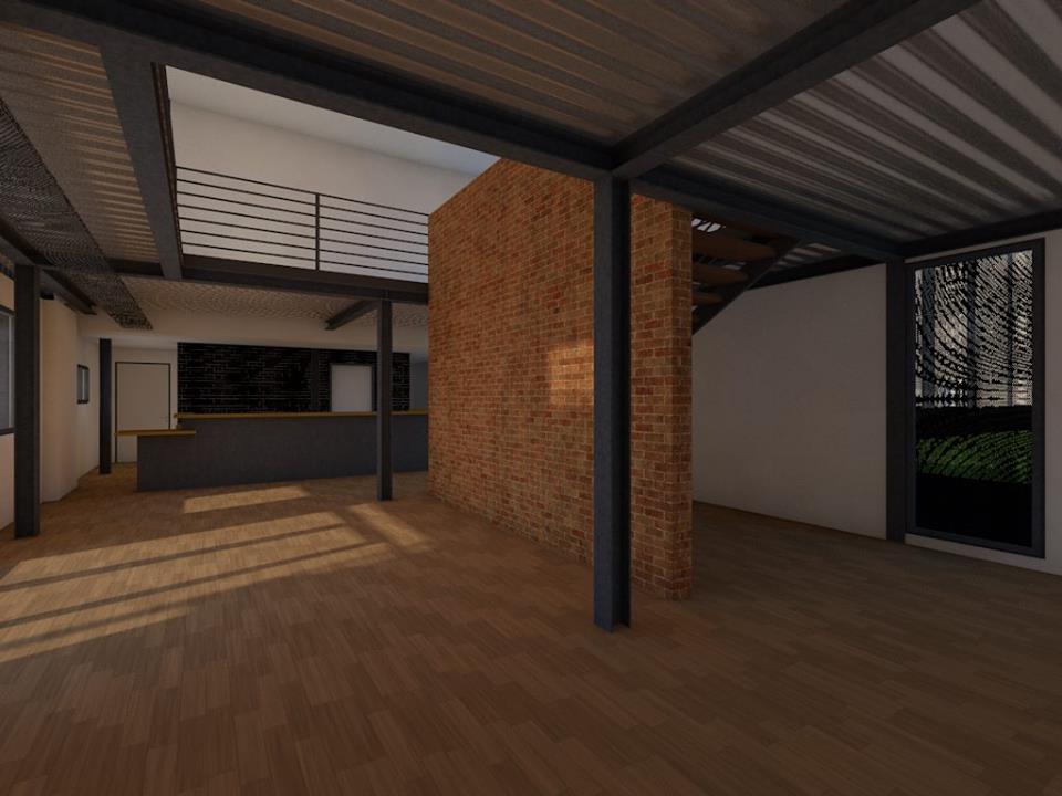La parte exterior de la bodega se modificó en base a los espacios interiores y utilizando puertas de cristal, además, considerando dos cuerpos externos que reciben las escaleras de emergencia, ascensor y una pequeña terraza cerca de la entrada del restaurante.